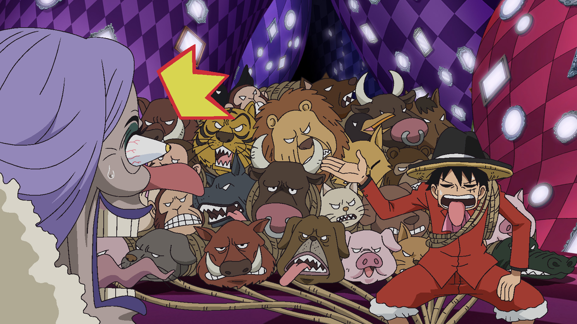 The plan is launched! Big Mom falls to pieces as the wedding - and the wedding cake - are destroyed and a slew of Luffys are wreaking havoc around the site. But just when Luffy gets in trouble, Jimbei confronts Big Mom bravely!