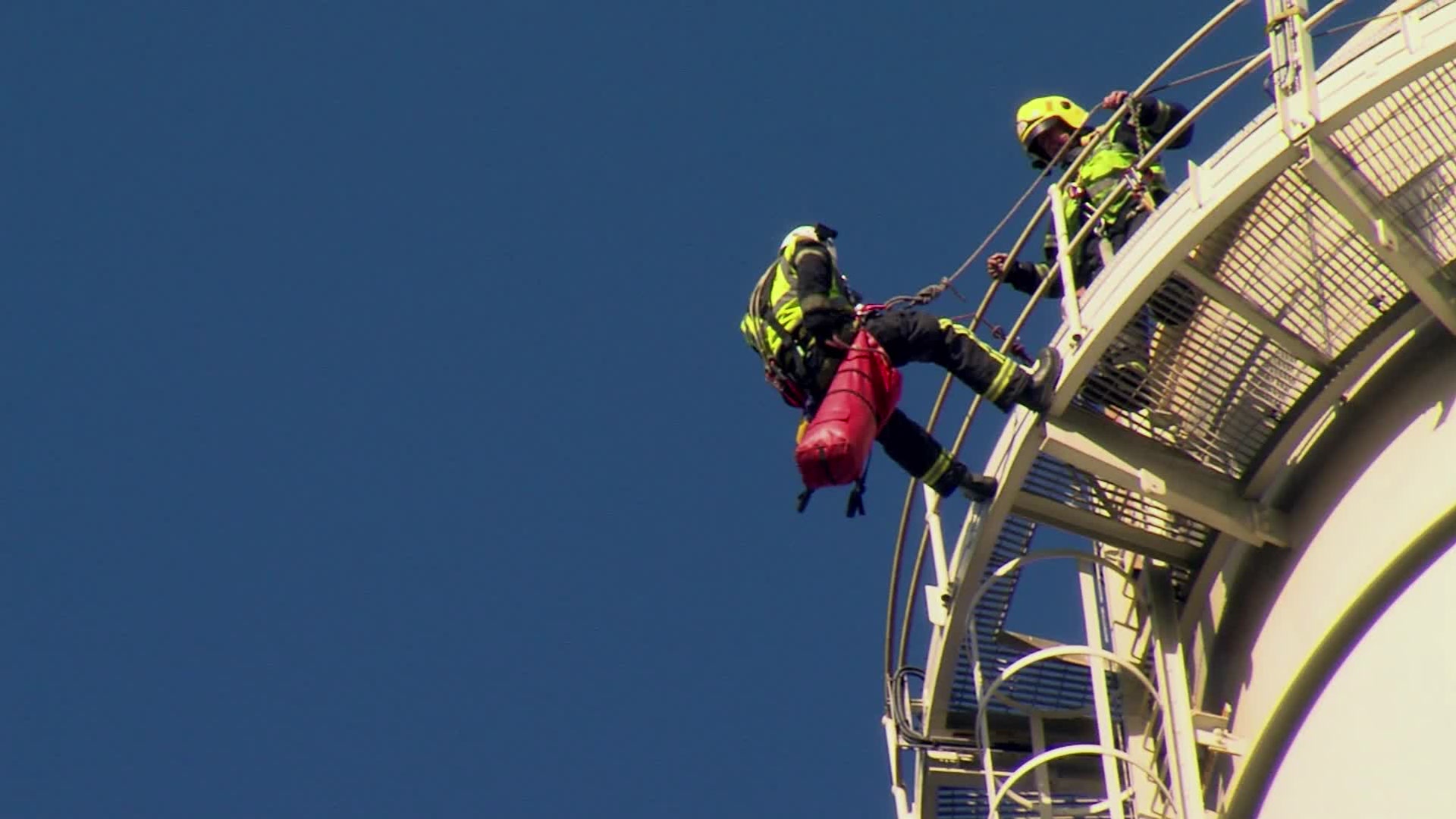 A blaze in a Dublin suburb. A dramatic highline rescue exercise involves a casualty being rescued from the top of a power plant’s cooling tower.