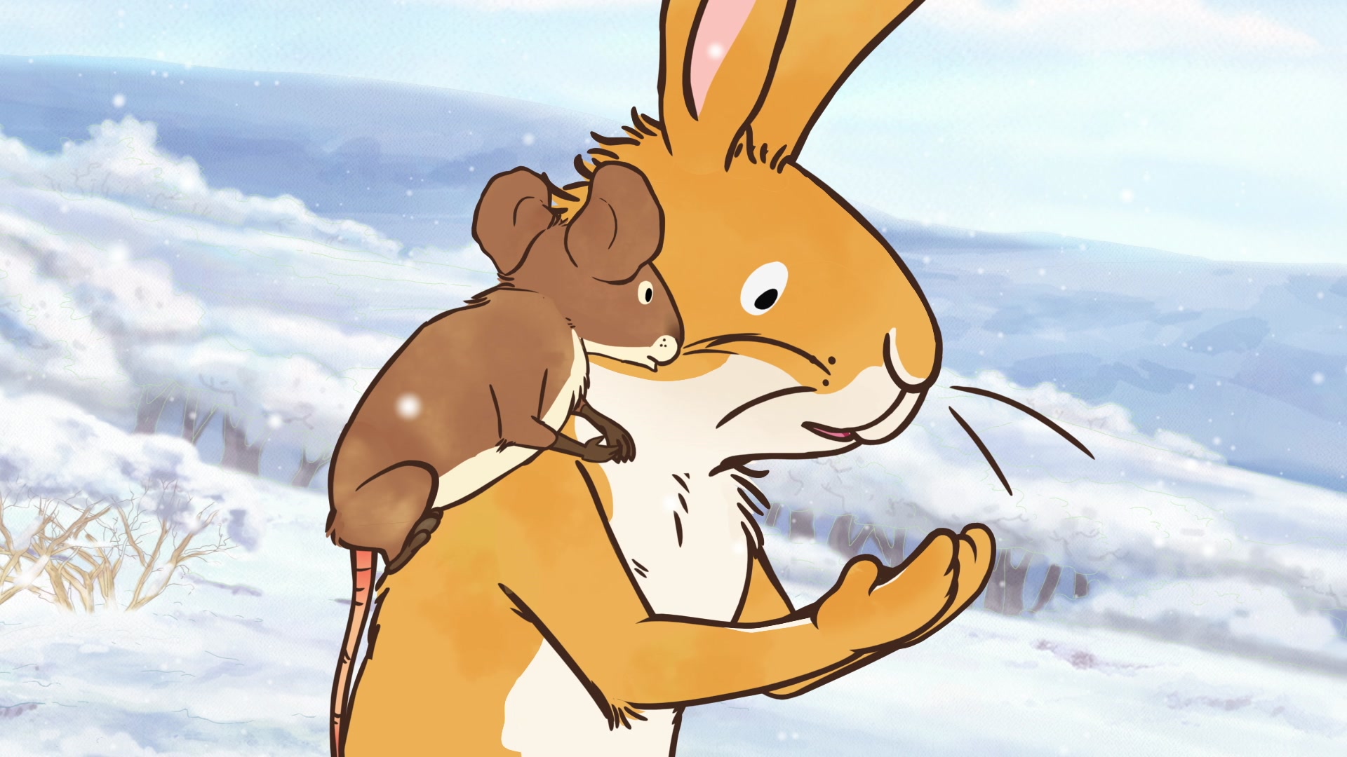 On a snowy Winter's morning Little Nutbrown Hare and Little Field Mouse are amazed at the intricate patterns they find in the snowflakes, each one different from the others.