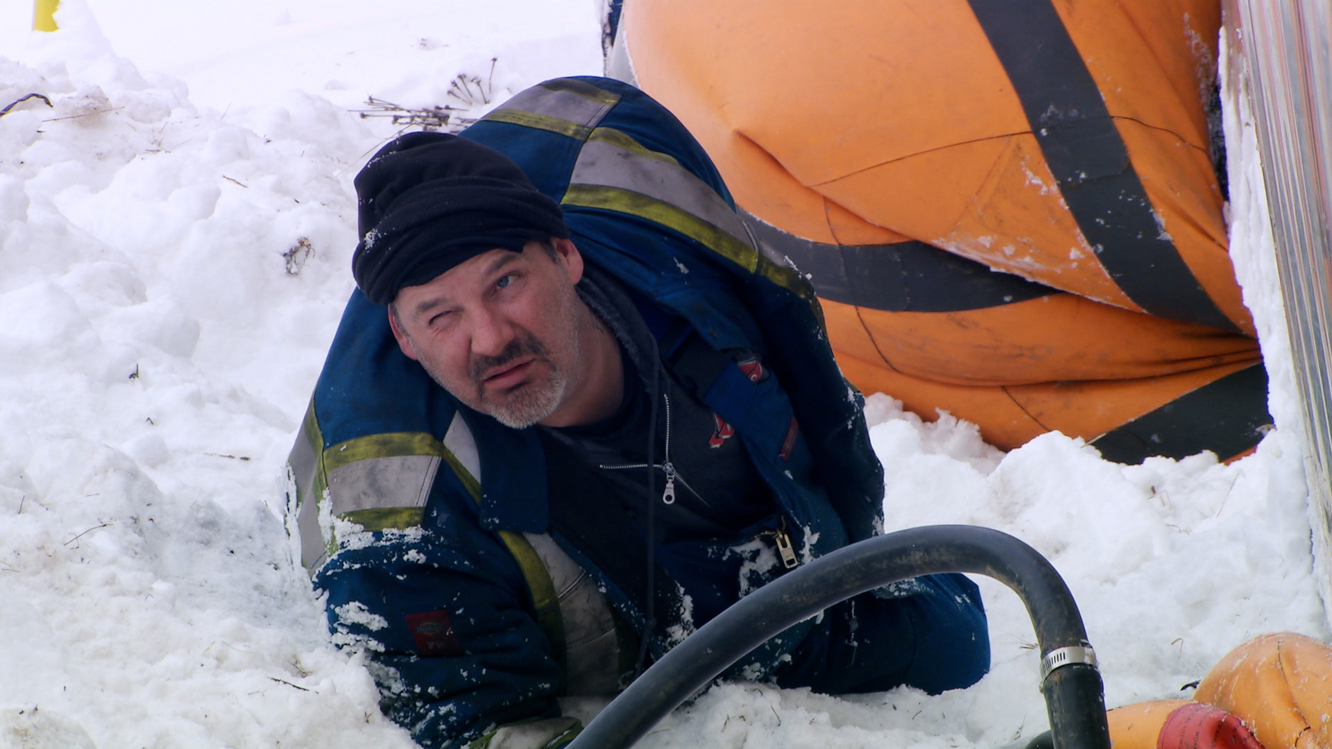 West of Hope in the Fraser Valley worst ice storm in decades has crippled communities. Ken rescues a hydro truck headed to fix downed power lines by the storm. Jamie heads north in B.C. to rescue a tractor trailer that tipped on its side.