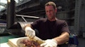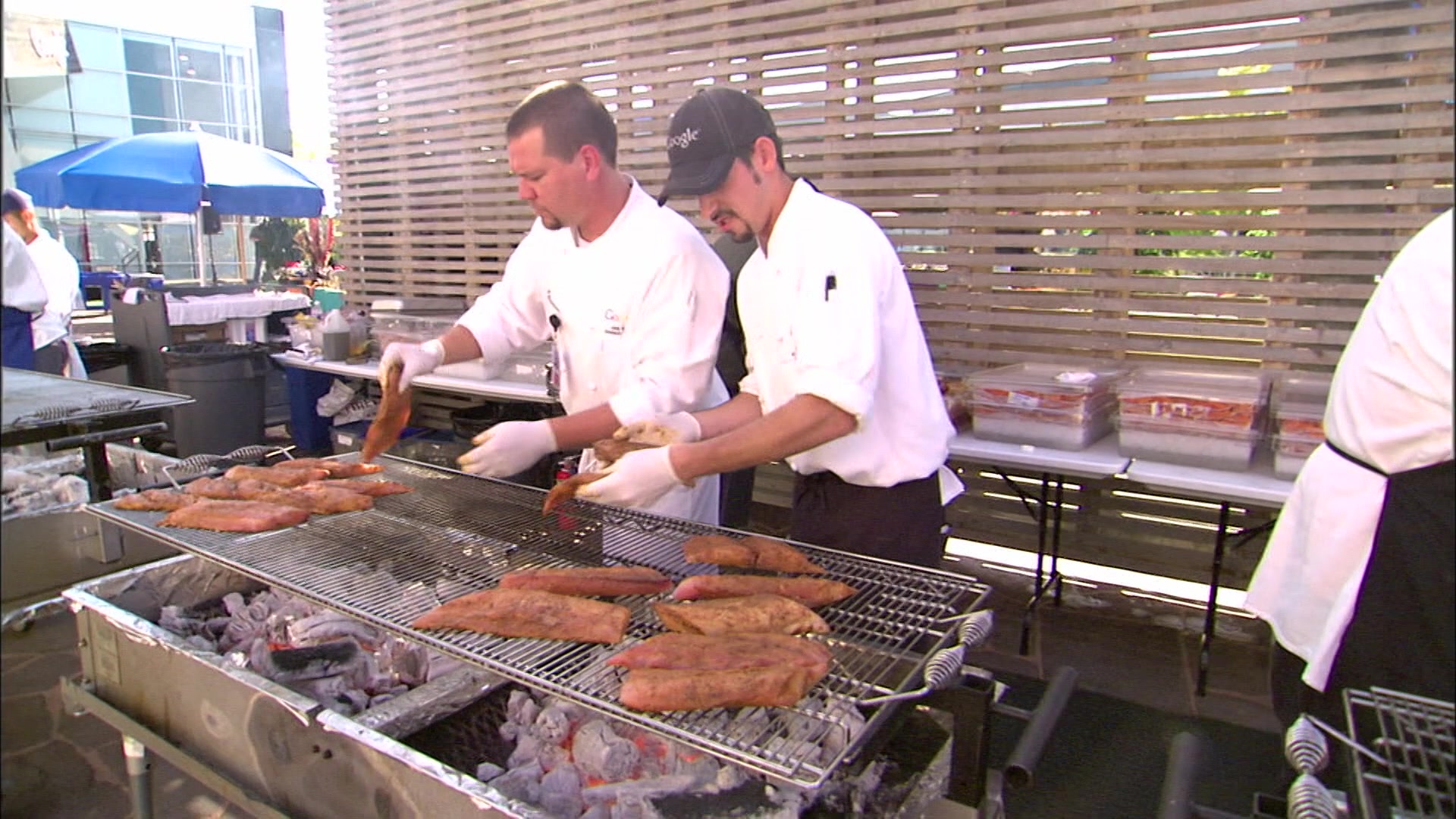 Bobby grills with guys who toss fish at Seattle's famous Pike Place Market.