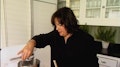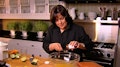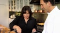 Ina gives a her friend a cooking lesson for his birthday.