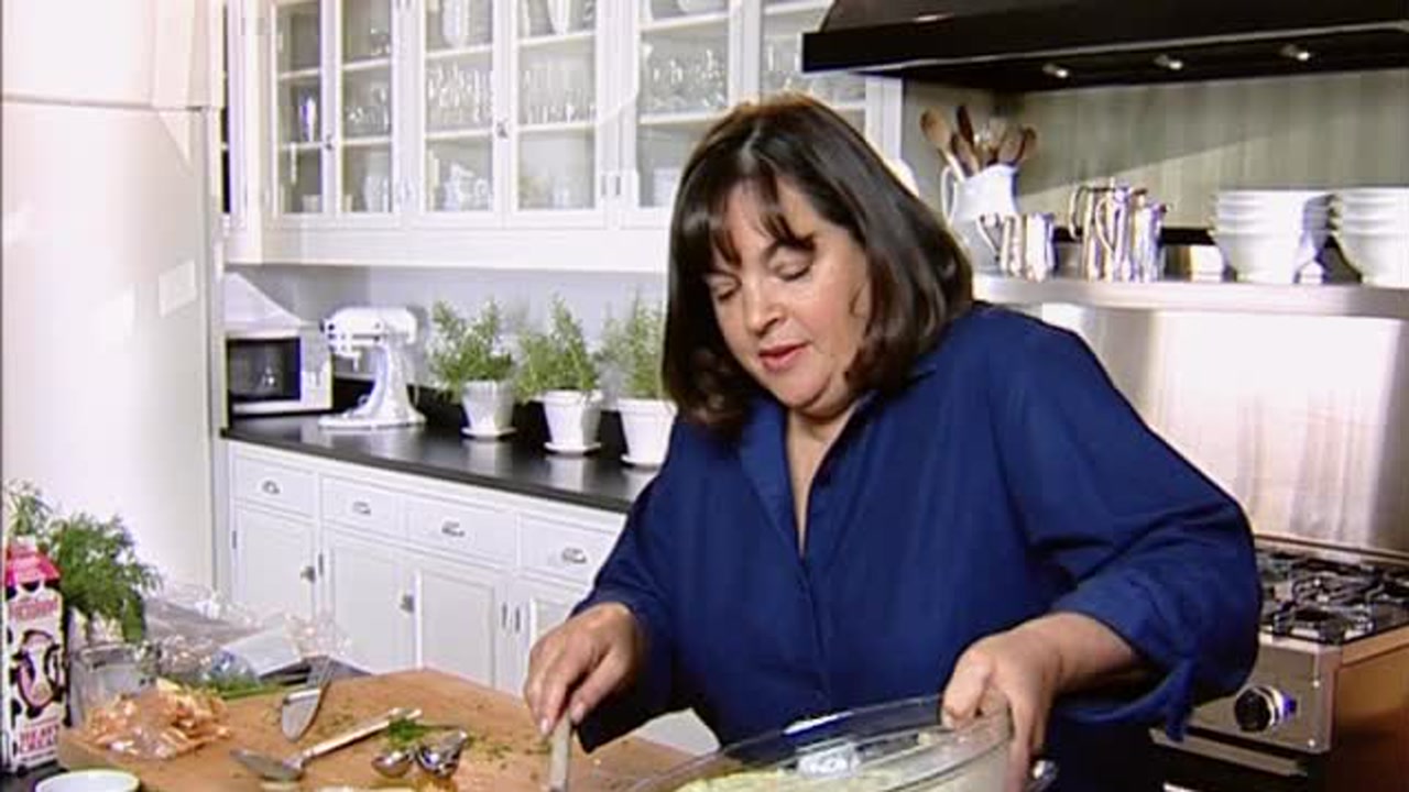 Ina and her bridge party friends make her recipes for a potluck party.