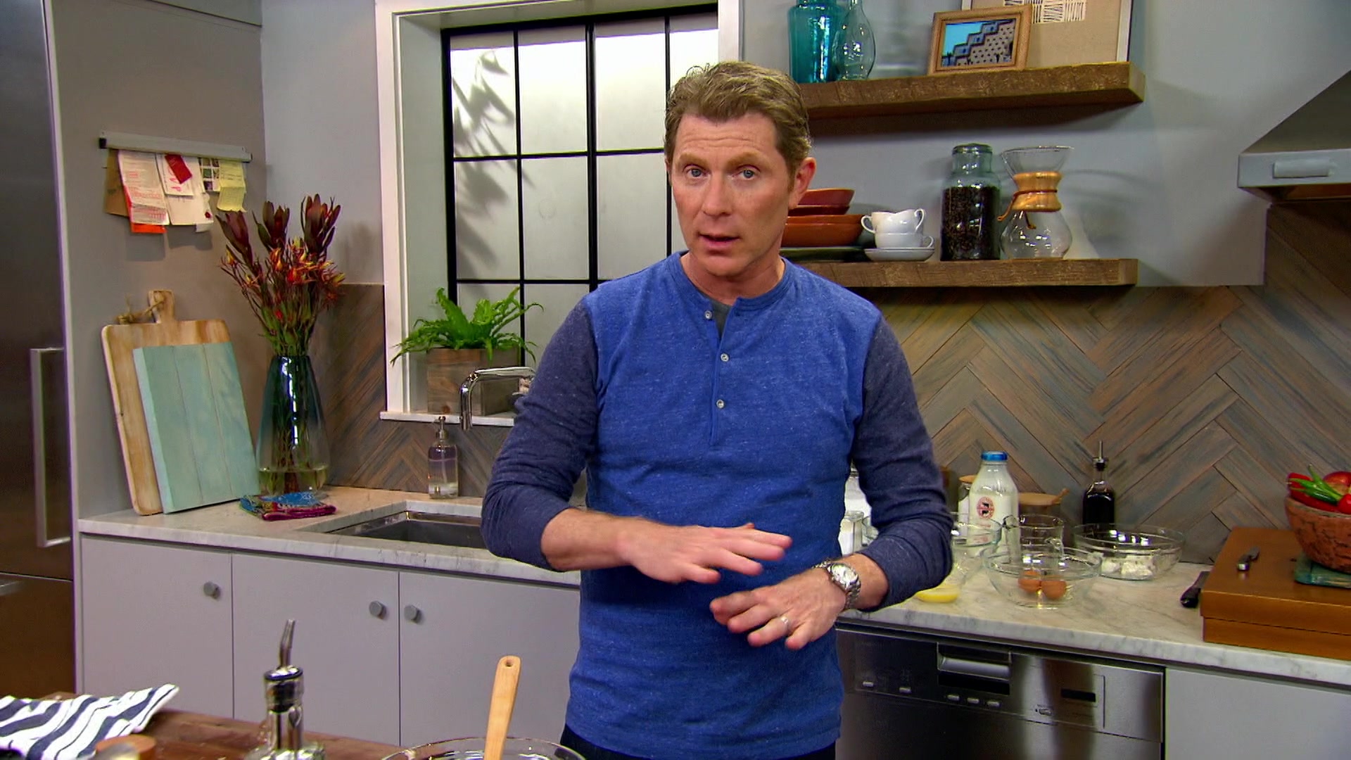 Bobby Flay is in his element as he hosts brunch at his place.