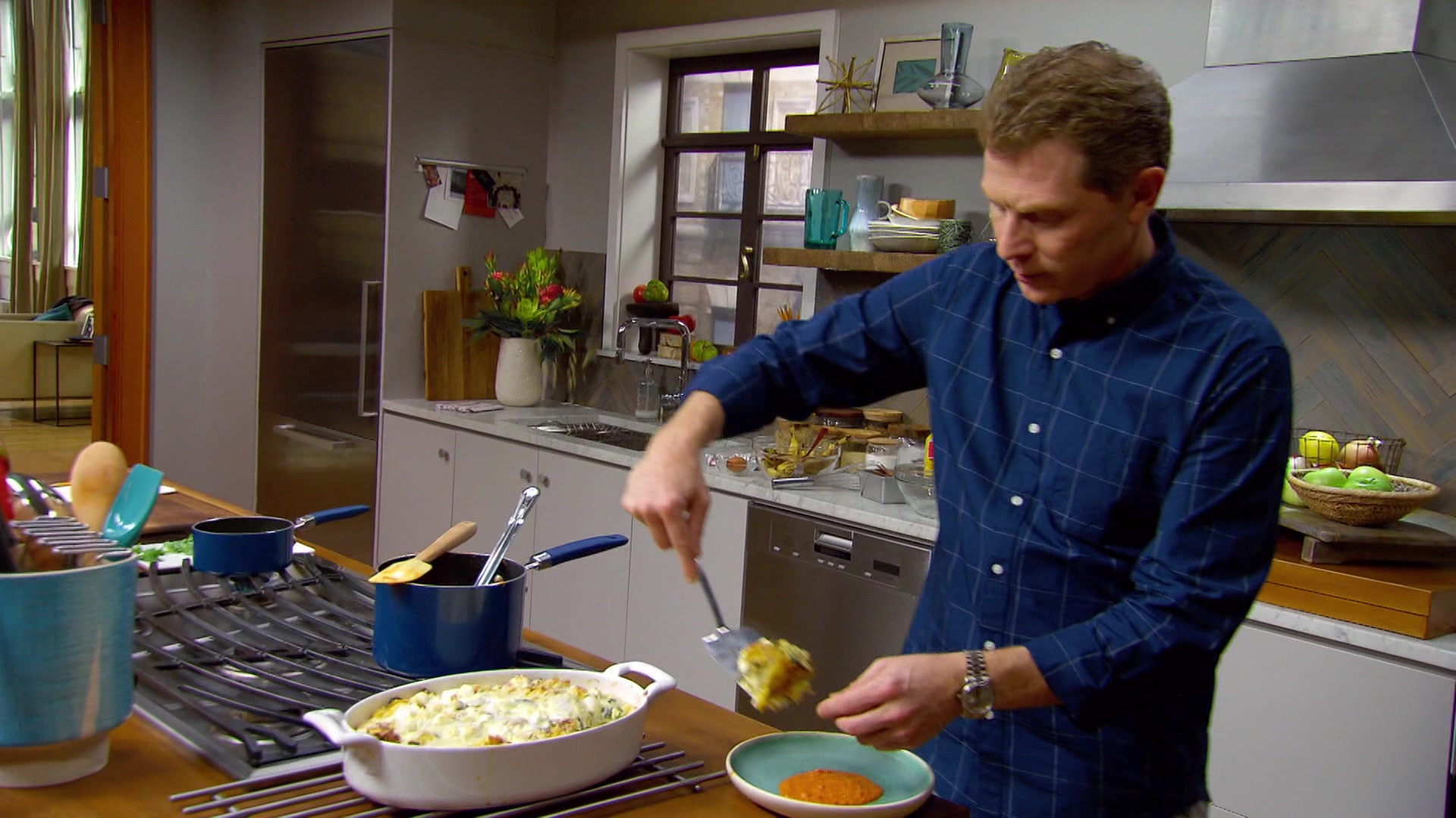 Bobby Flay is in his element as he hosts brunch at his place.