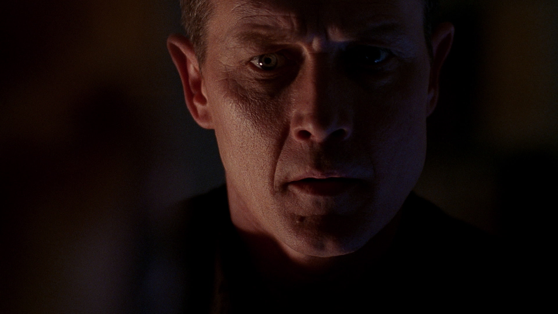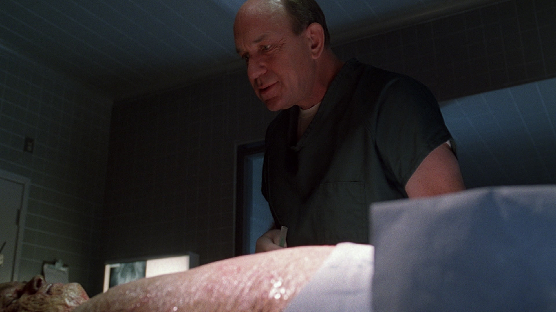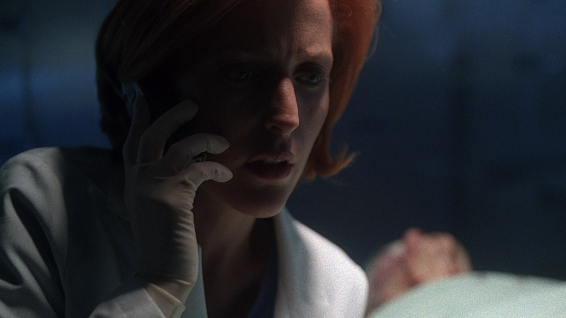 Mulder searches for Doggett after being trapped with a reptilian monster.